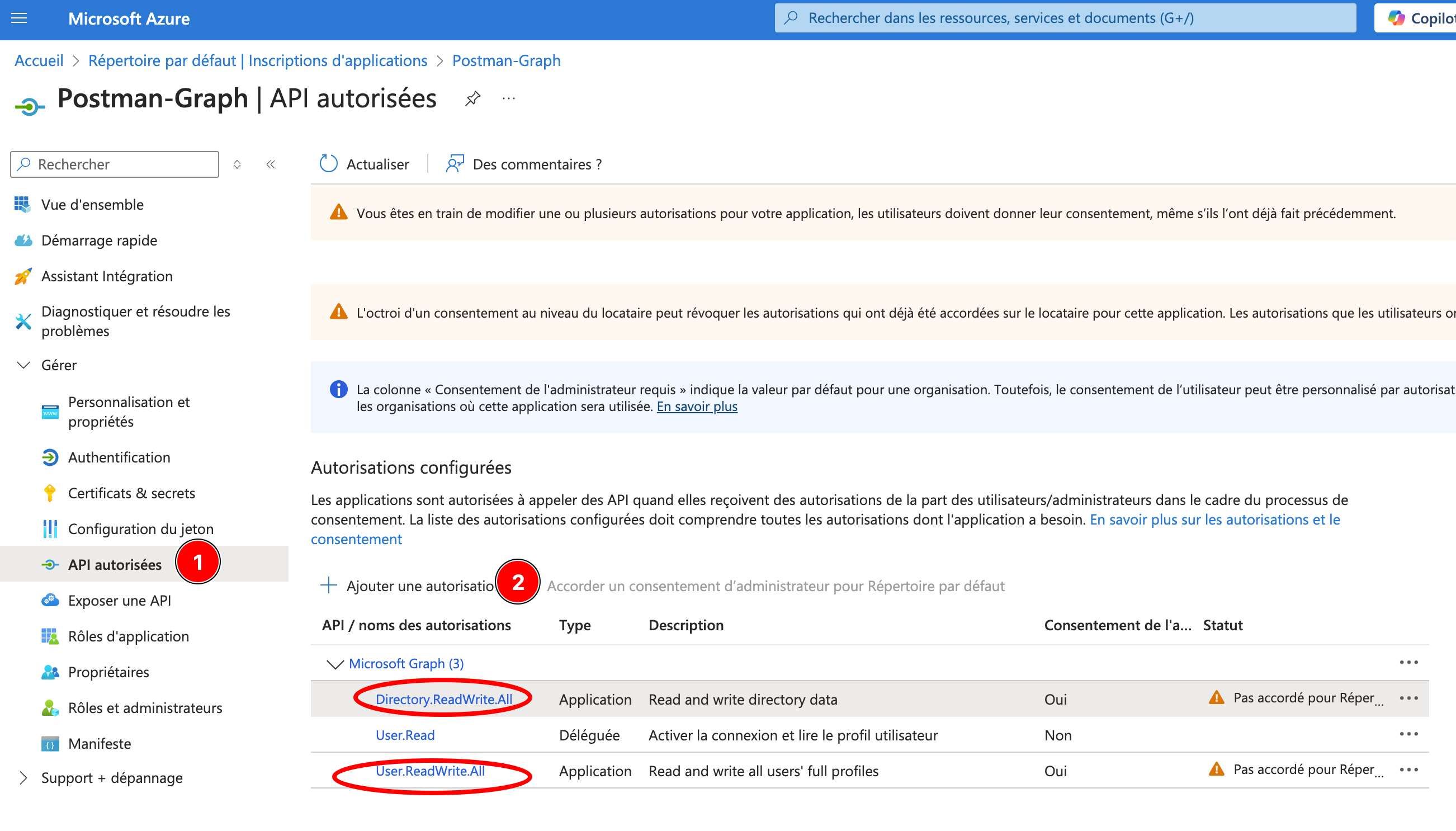 - Clique sur "Accorder un consentement d'administrateur pour Répertoire par défaut"