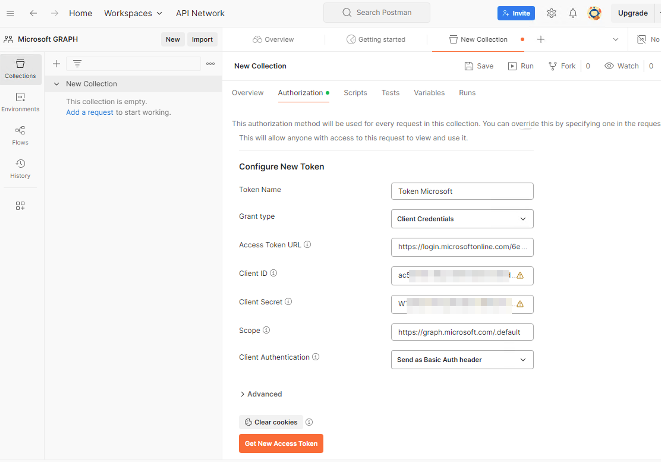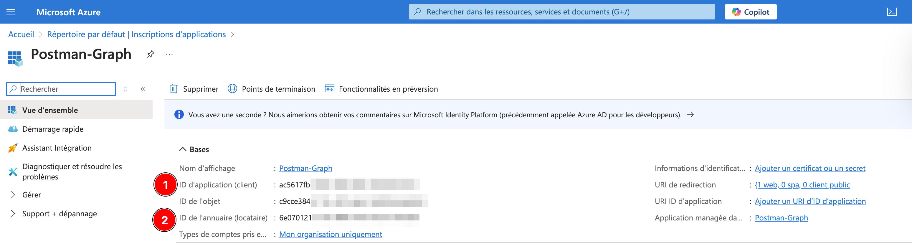 https://login.microsoftonline.com/<ID_TENANT>/oauth2/v2.0/token - Client ID : ID de l’application