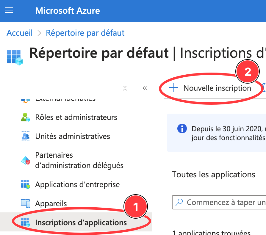 - Va dans le Portail Azure → Microsoft Entra ID → Inscriptions d’applications